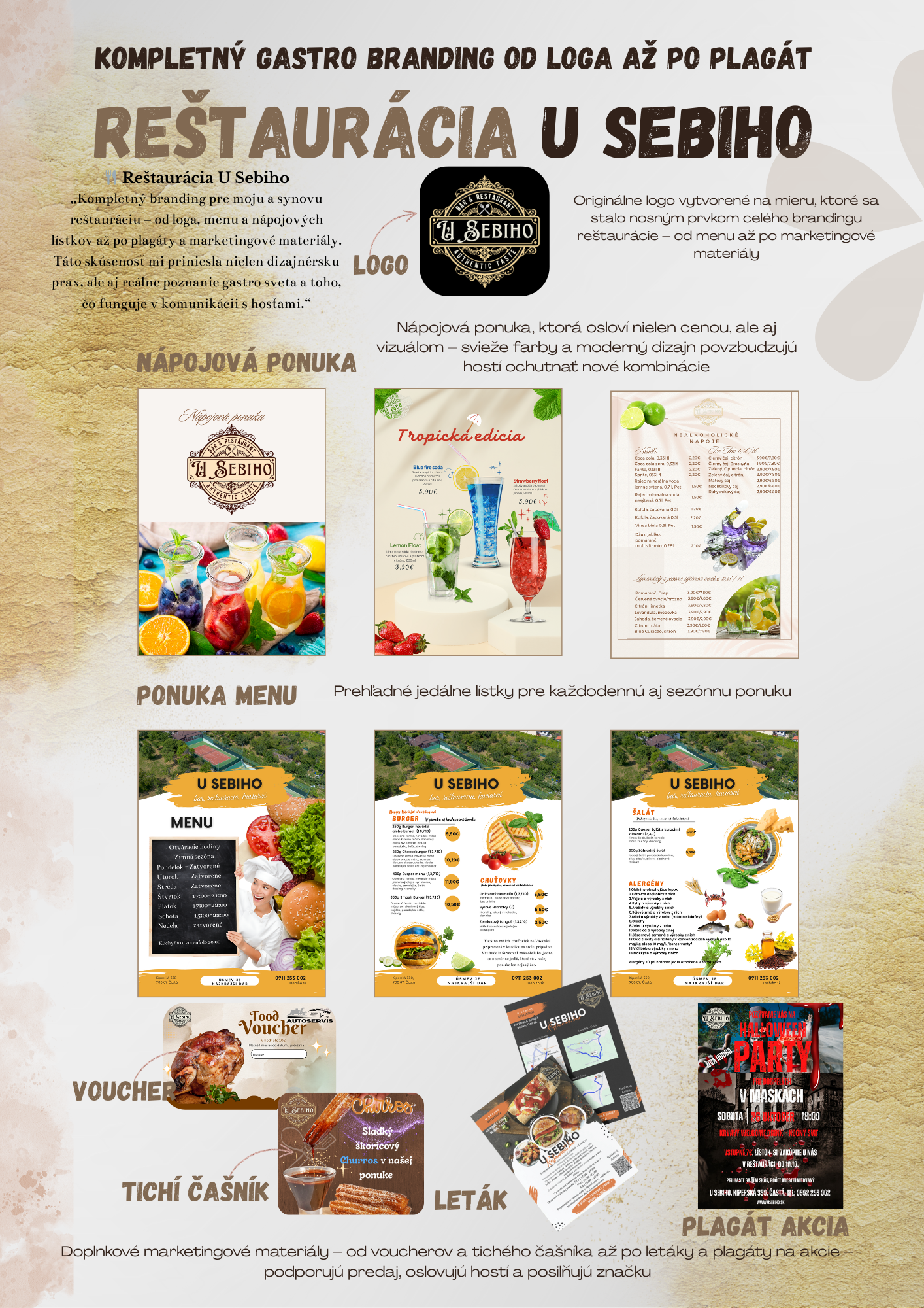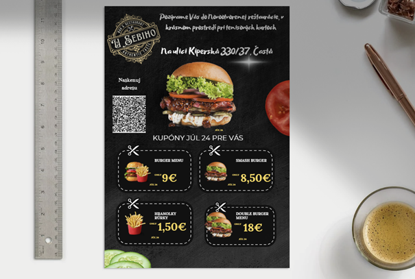 Menu, plagáty, bannery či etikety – grafika, ktorá pôsobí čisto, čitateľne a reprezentuje váš podnik.
